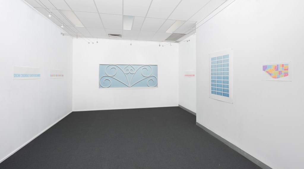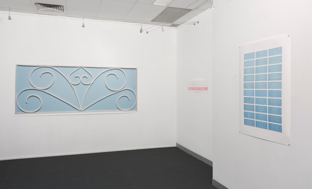 On the Streets Where You Live charts the themes of place, memory and belonging. It’s an exhibition that celebrates the neighbourhood in which I’ve lived for over twenty years, drawing on a number of suburban references, from the ornamental ironwork of fences, gates and verandah railings, to local street nomenclature and road maps.