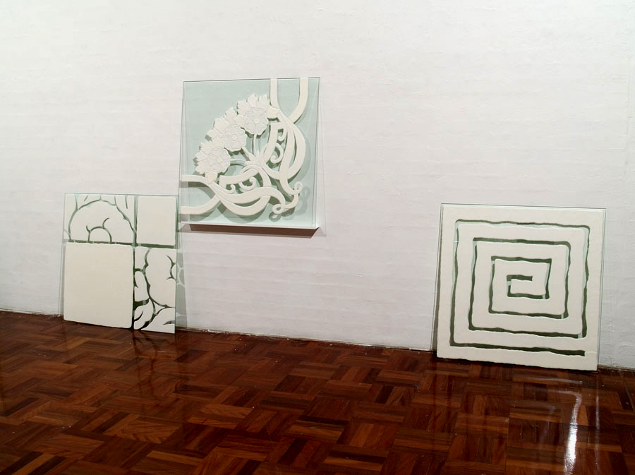 Wunderlich (six rooms), 2006, royal icing on glass, 100 x 100cm each (6 panels), detail