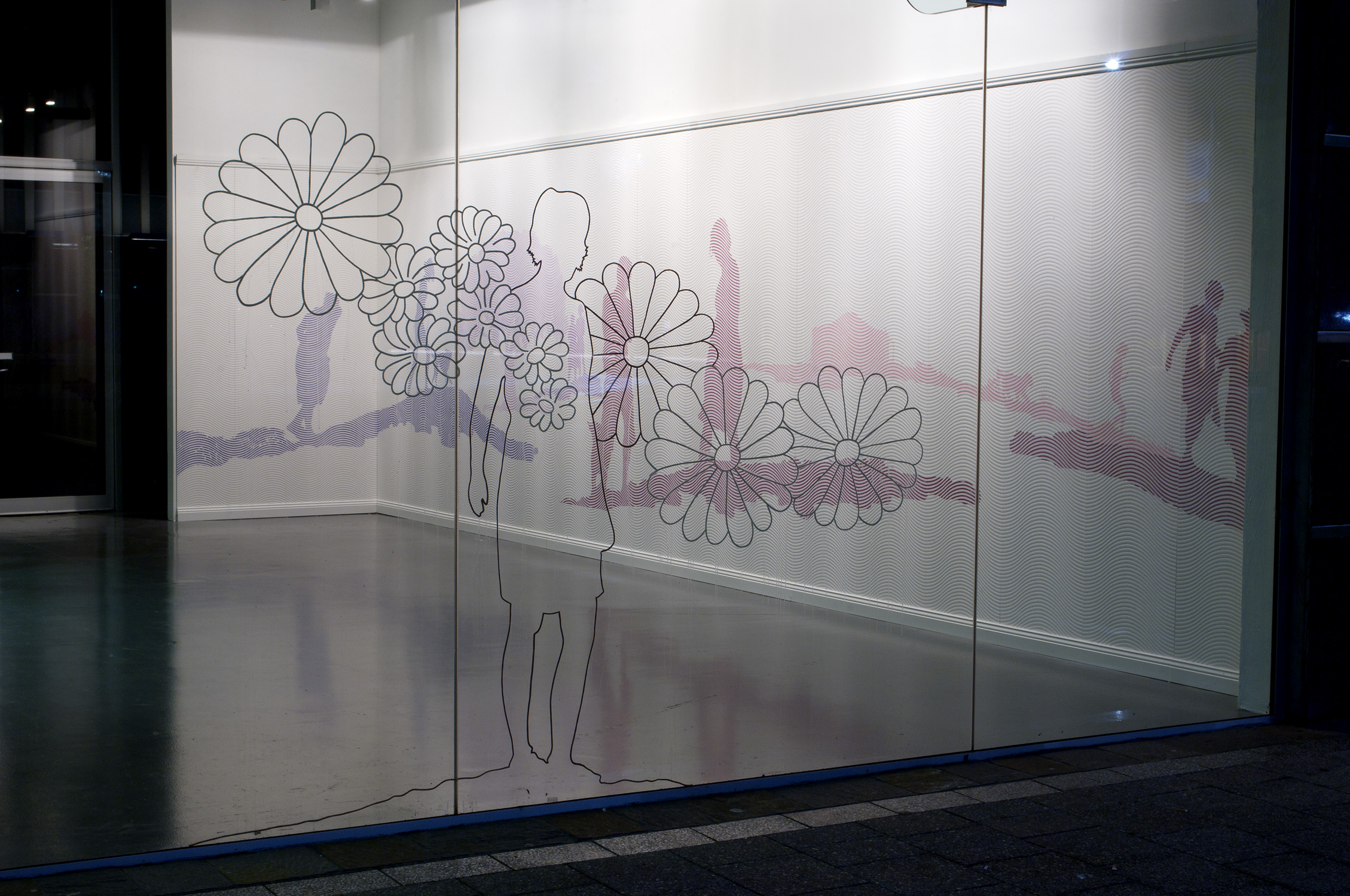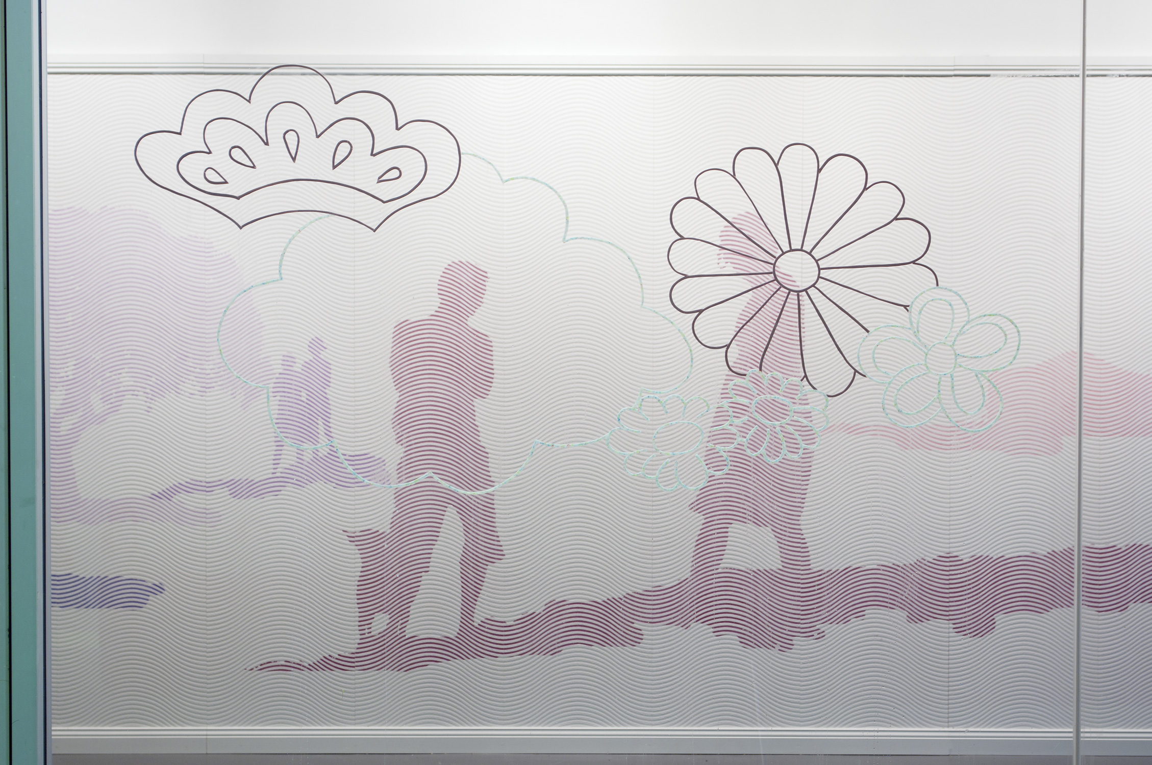 Sugar Town (dog days), 2010, colour pencil on textured wallpaper, MDF, timber mouldings, bubblegum tape