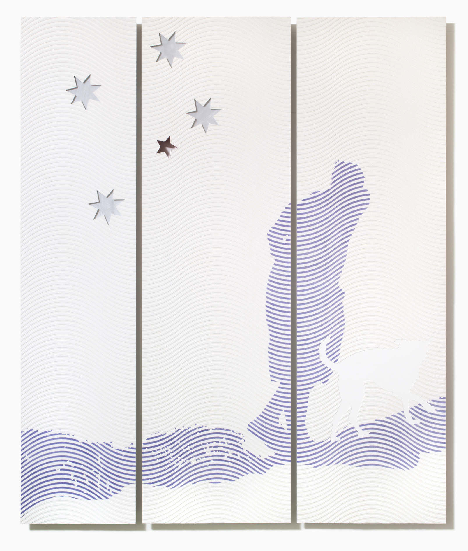The Shadow of Love: Reservoir/Ghost Dog, 2010/2013, colour pencil, ribbon, wallpaper, MDF, 180 x 159cm (detail)
